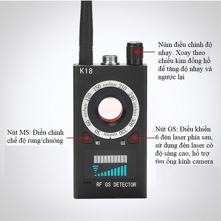 Để bảo vệ bạn và gia đình bạn, chúng tôi xin giới thiệu đến bạn sản phẩm máy phát hiện định vị, máy ghi âm, camera ghi hình K18. Thiết bị này sẽ giúp bạn loại bỏ và nhận biết được mình đang bị theo rõi hay không.THÔNG SỐ KỸ THUẬT: