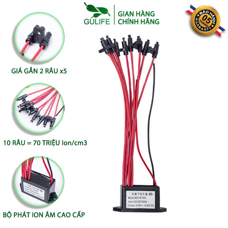 👉[ Chính Hãng ] Máy Phát Ion Âm GULIFE 10 Râu GMS-FA7000 - Điện Áp AC220V-50Hz, Bảo Hành Chính Hãng 5 Tháng 1 Đổi 1✔ Sản phẩm kiểm định chất lượng bởi GULIFE VN