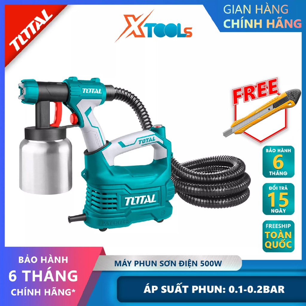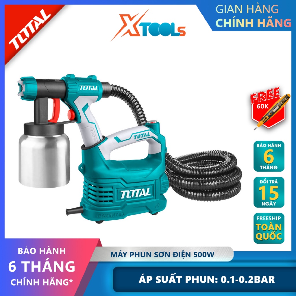 Nhà cửa & Đời sống > Dụng cụ & Thiết bị tiện ích > Sơn & chất chống thấm tường || Máy phun sơn bình nhôm TOTAL TT5006-2 súng phun sơn 220-240V~50-60Hz, Công suất 350 W, 0.1-0.2 Bar, 380ml/phút, 50DIN-sCòn hàng