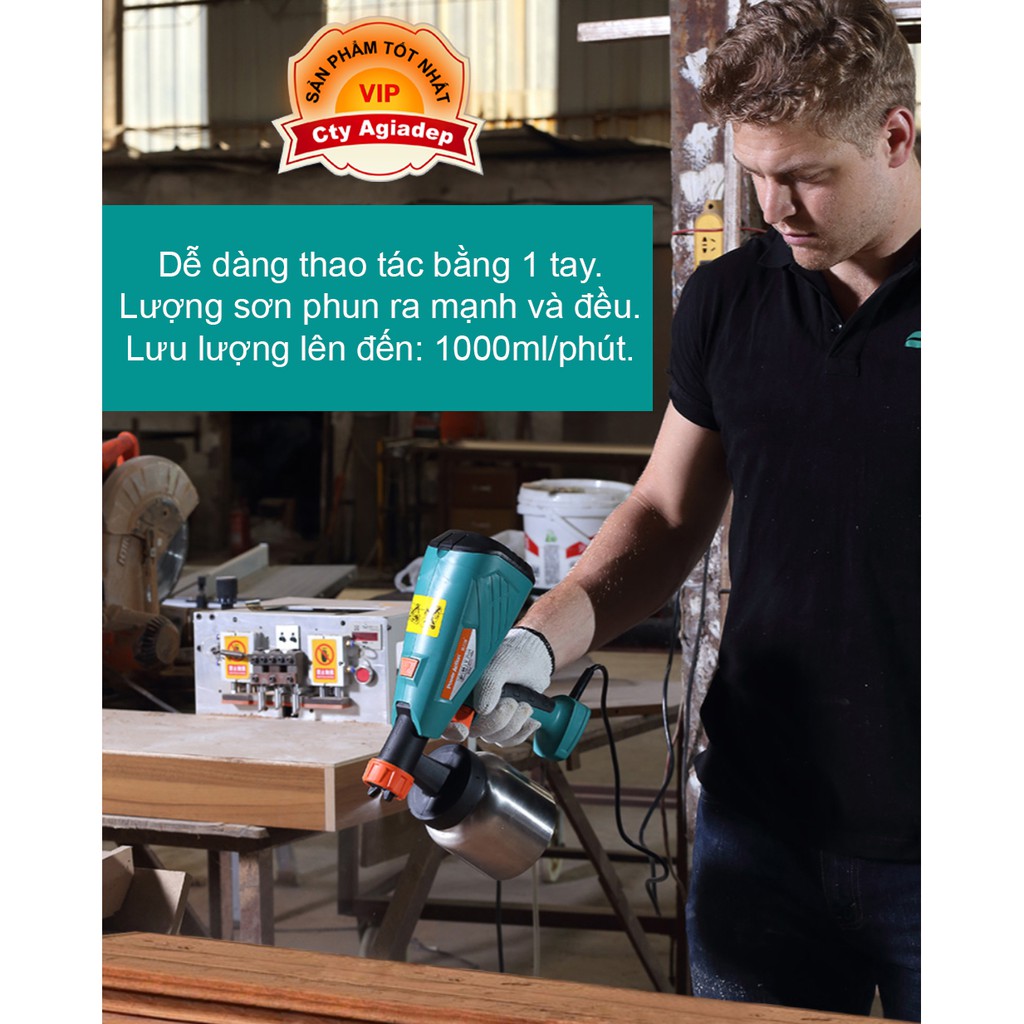 Lượng sơn phun ra mạnh và đều. Lưu lượng lên đến 1000ml/phút.