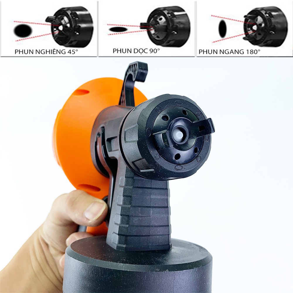 - Công nghệ phun sơn mới với motor công suất lớn 500W tạo ra lực phun cực mạnh, giúp phủ đều sơn ở mọi khe kẽ góc ngách mà các dụng cụ sơn khác không làm được