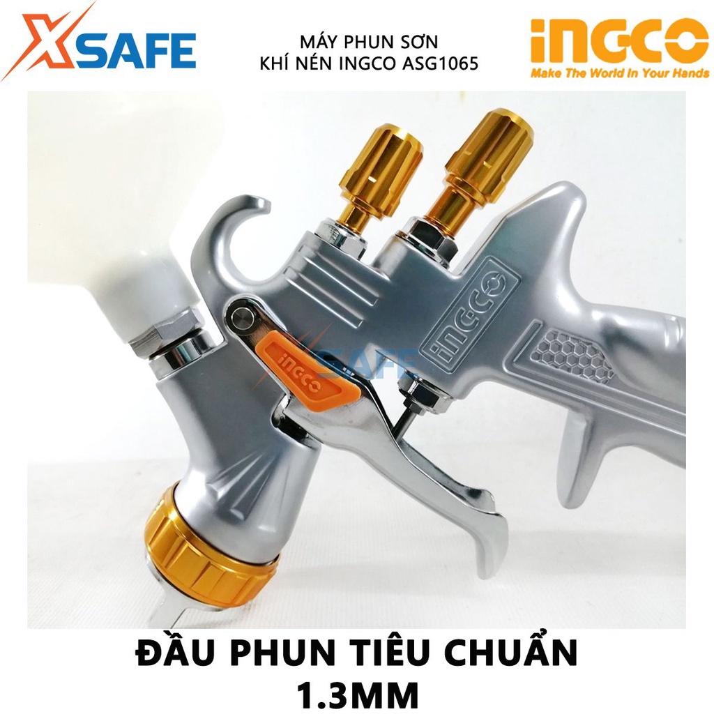 Giới thiệu Máy phun sơn khí nén INGCO ASG1065 Súng phun sơn đầu phun tiêu chuẩn 1.3mm, dung tích bình 600cc, lượng khí 5-9cfm