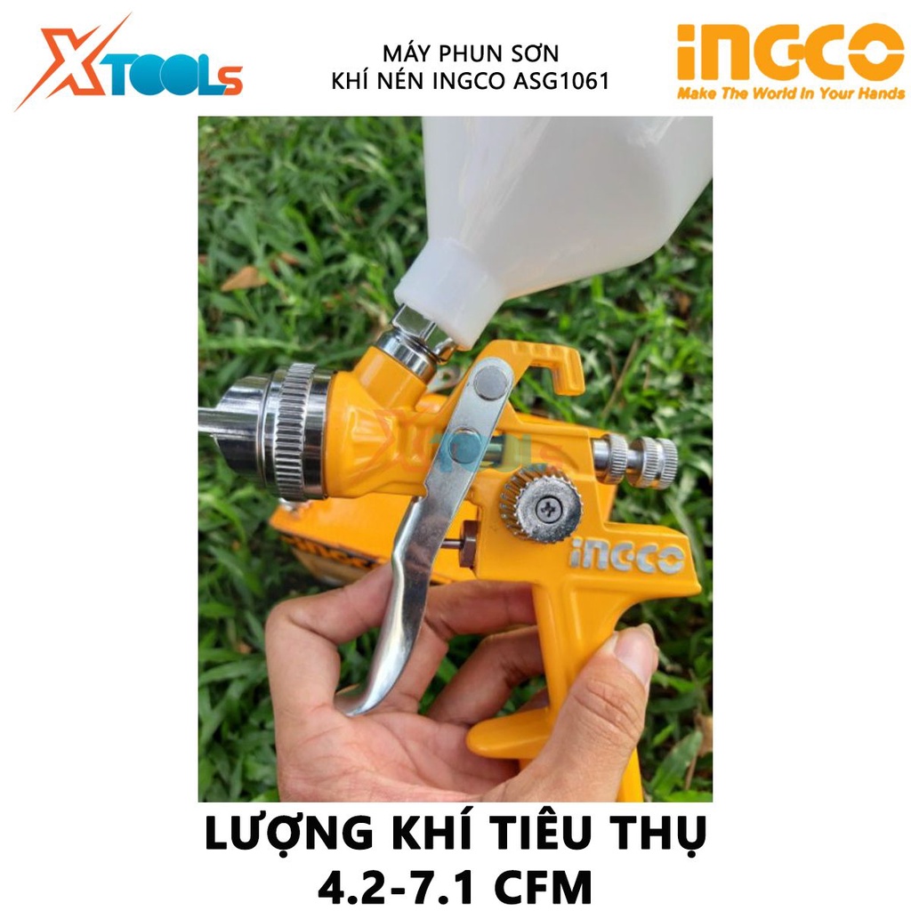 Giới thiệu Máy phun sơn khí nén INGCO ASG1061 | súng phun sơn Vòi phun tiêu chuẩn 1,4mm, dung tích bình sơn 600cc phun sơn gỗ, sơn