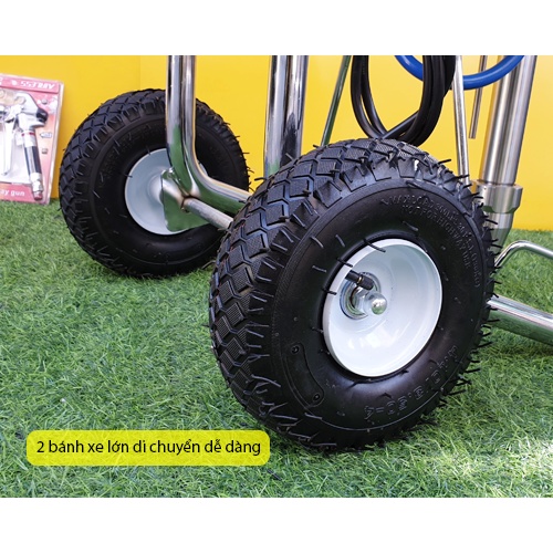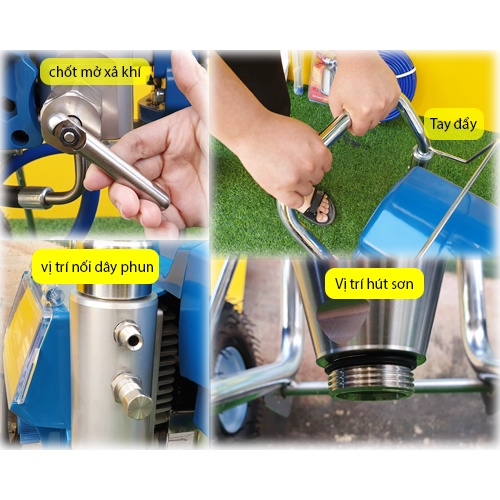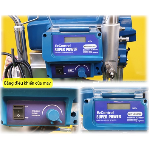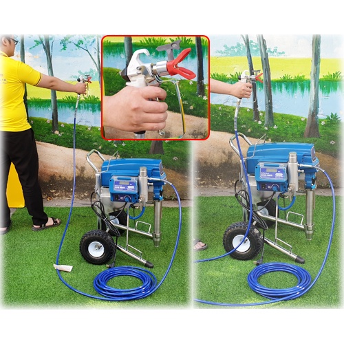 - Máy phun vô cùng mạnh mẽ với công suất lên đến 3300W cùng áp suất phun 4.5l/phút quá trình hoàn thiện công trình cũng nhanh chóng và đẹp hơn