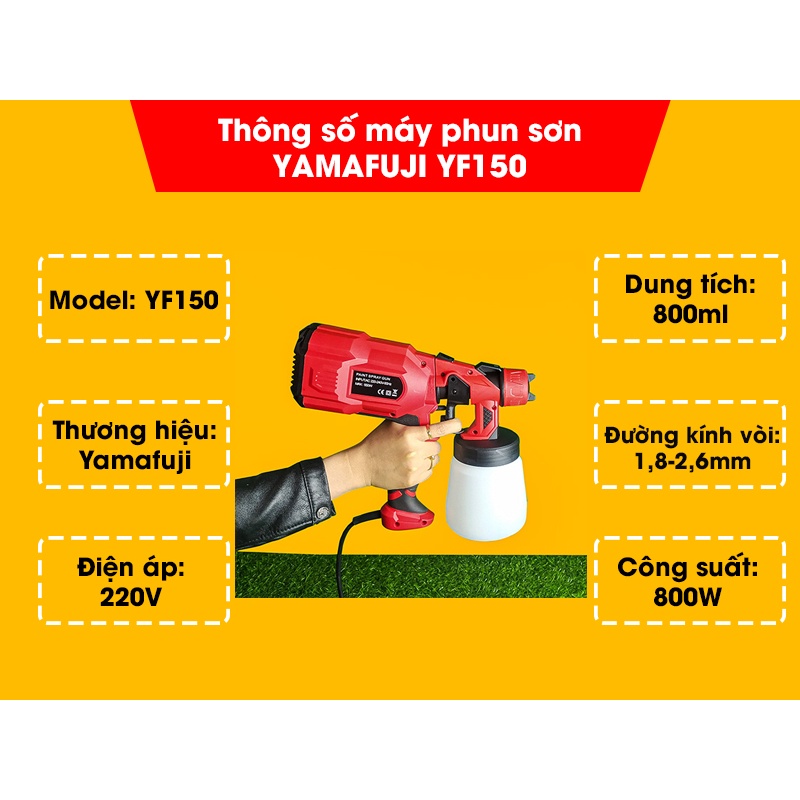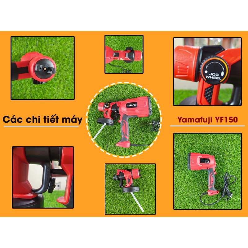 - Yamafuji YF150 sở hữu kiểu dáng nhỏ gọn, là dòng máy phun sơn cầm tay chạy điện.