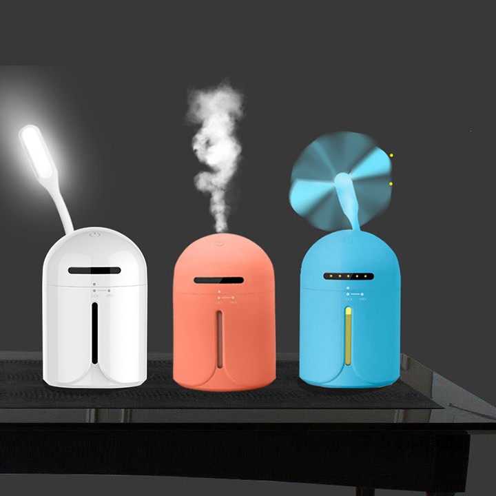 Máy phun sương 3 in 1 tạo độ ẩm cao , thích hợp cho môi trường ở văn phòng điều hòa , không lo da nứt nẻSản phẩm bao gồm : 1 Thân máy phun sương + quạt USB + Đèn led + phụ kiện kèm theo