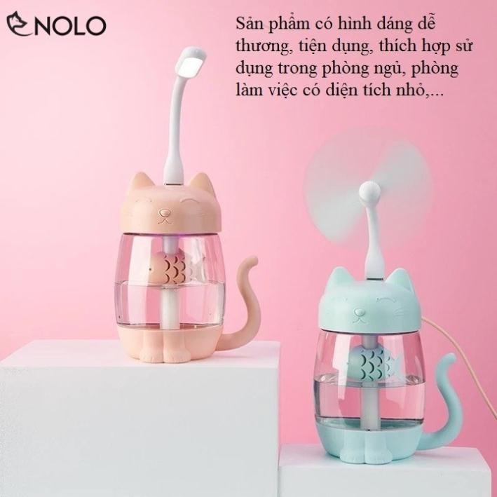 Máy phun sương đa năng hình mèo kèm quạt + đèn USB