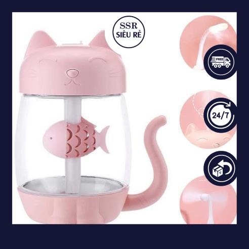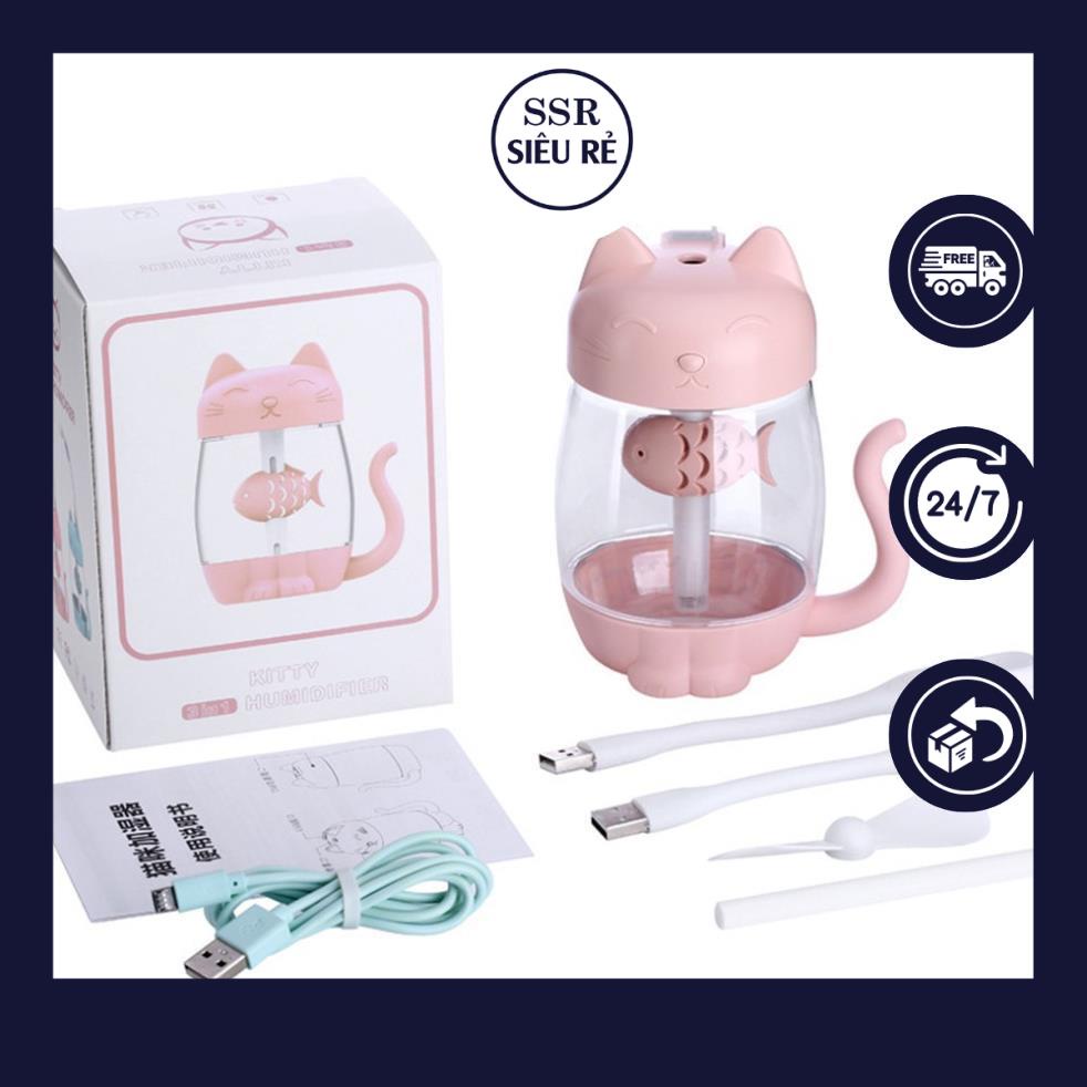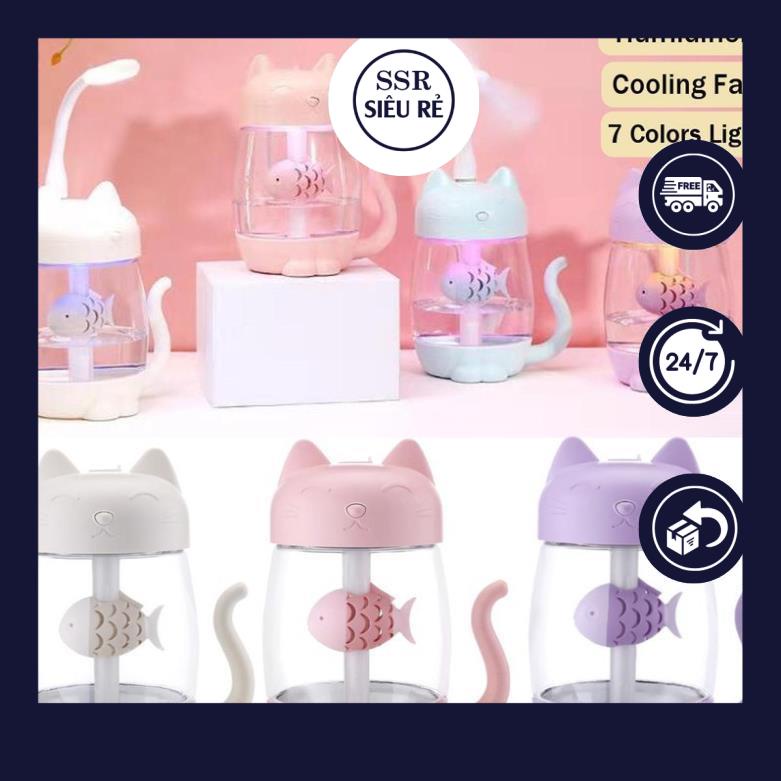 Máy phun sương, hơi nước, khuyếch tán tinh dầu mini, để bàn, đa năng hình mèo kèm quạt + đèn USB (LA120156)Shop Siêu Rẻ