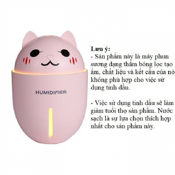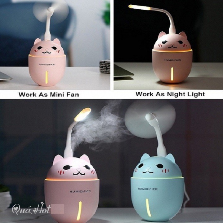 Máy Phun Sương Mini Hình Chú Mèo Tích Hợp Đèn Tặng Kèm Đèn, Quạt USB
