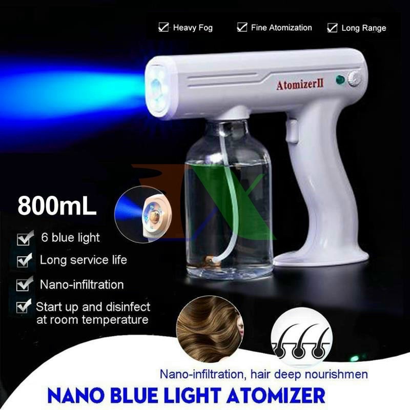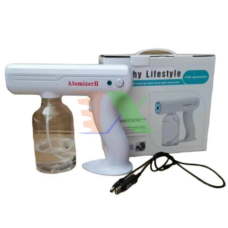 MÁY PHUN SƯƠNG SÁT KHUẨN CẦM TAY"Atomizer II" Mã DJ9526 phiên bản mới nhất, Máy phun sương tự nhiên, Máy phun sương mịn nhất 2 chế độ phun, Máy cầm tay, Di động, Sạc lại và Sử dụng ánh sáng xanh Blueray để sát khuẩn cùng với dung dịch sát trùng hoặc cồn.