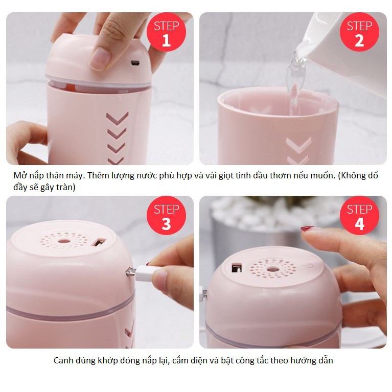 LƯU Ý: Các vấn đề nghẹt lỗ phun sương do sử dụng tinh dầu, sử dụng tinh dầu đậm đặc nhiều làm hư thiết bị shop không hỗ trợ bảo hành đổi trả.