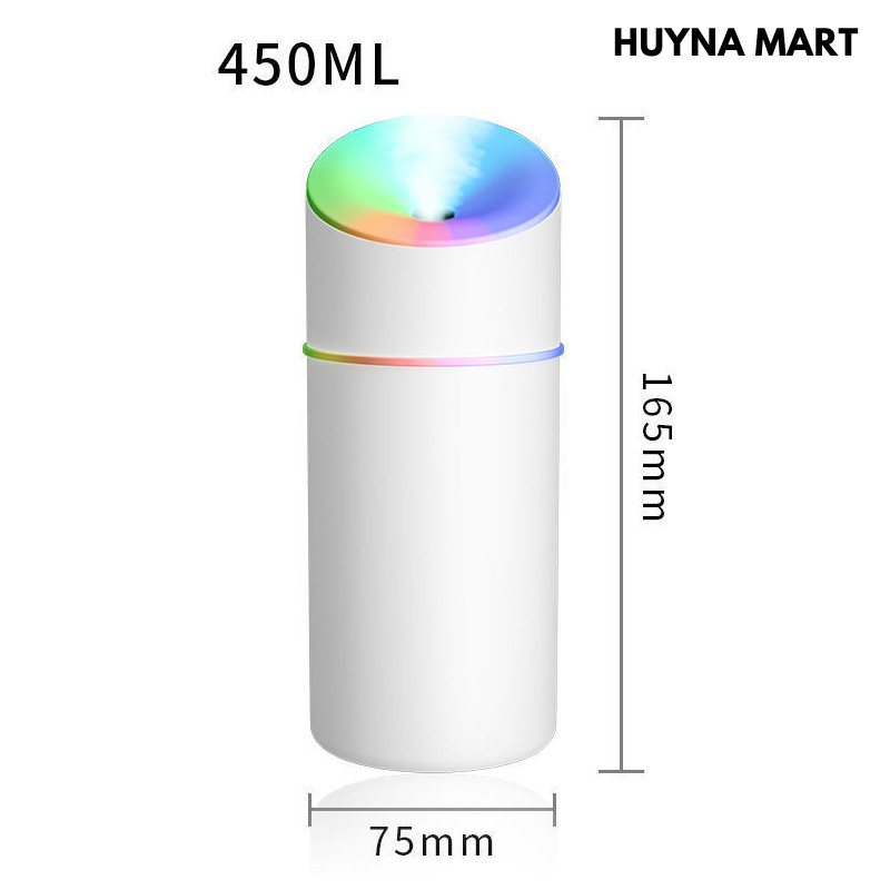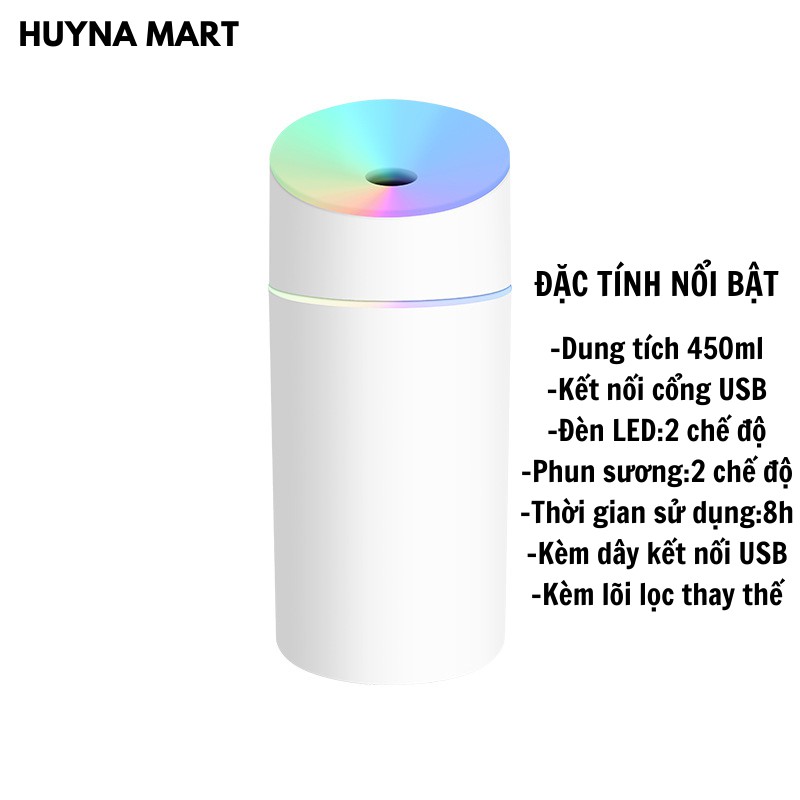 Máy Phun Sương Tạo Ẩm Cho Phòng Điều Hòa, Xe Hơi Có Đèn Led Nhiều Màu Mới 450ml (Tặng kèm 1 lõi lọc thay thế)+Thông số kỹ thuật: