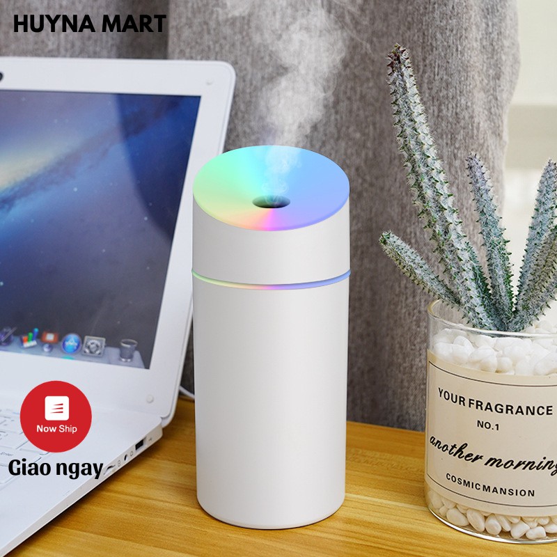 Máy Phun Sương Tạo Ẩm Cho Phòng Điều Hòa, Xe Hơi Có Đèn Led Nhiều Màu Mới 450ml (Tặng kèm 1 lõi lọc thay thế)
