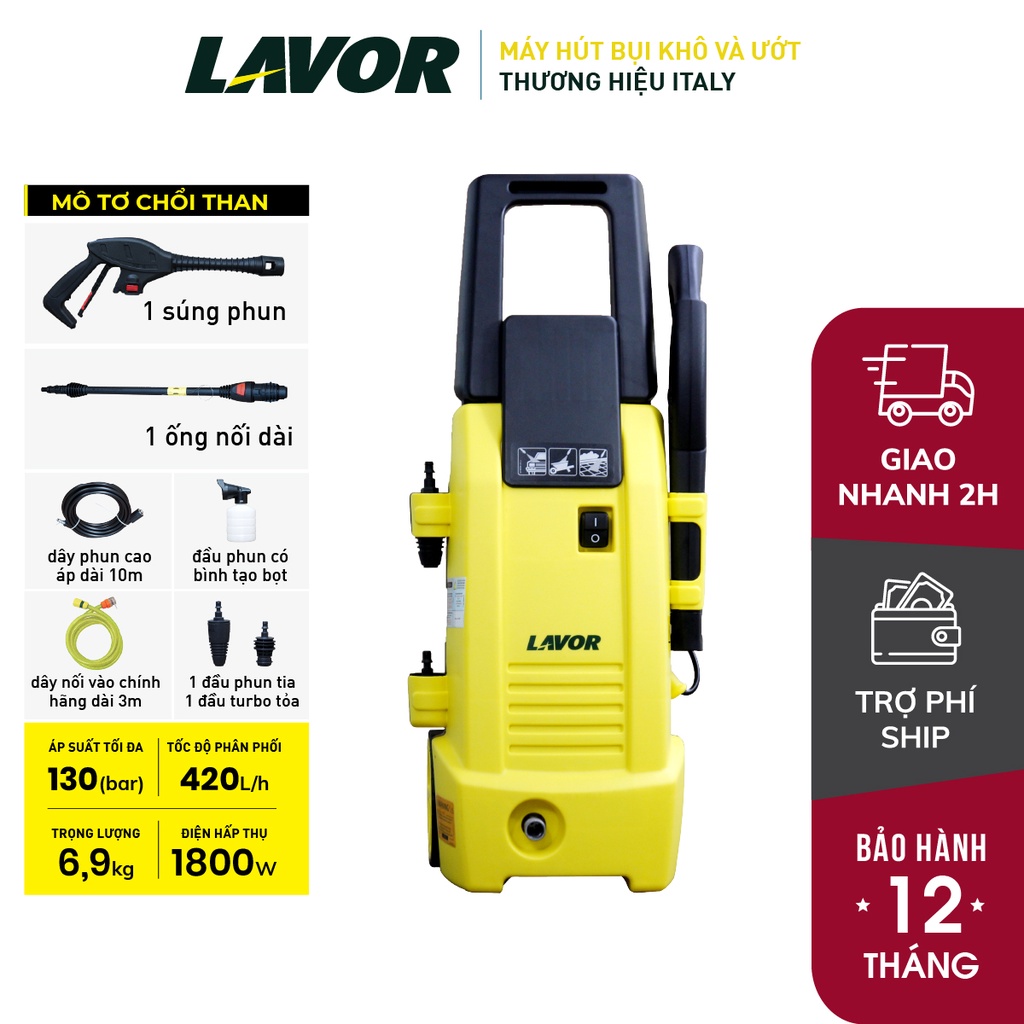 Máy phun xịt rửa áp lực nước, xịt rửa xe 1800W Lavor NINJA-PLUS130 (new model) 130 bar bảo hành 1 năm