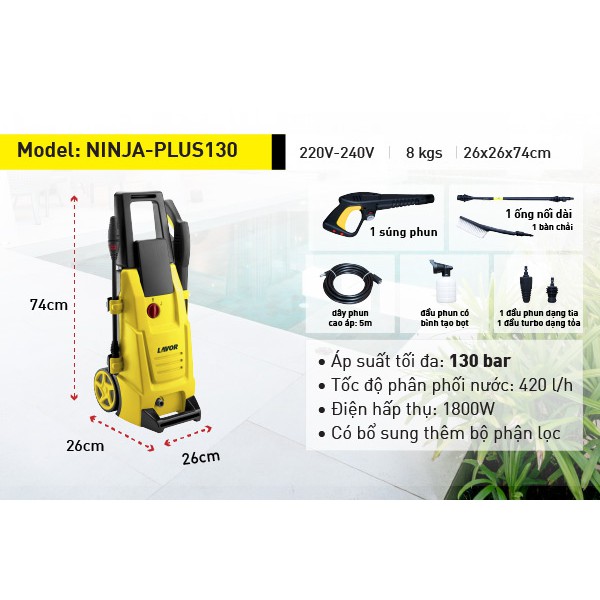 Giới thiệu Máy phun xịt rửa xe áp lực nước Lavor NINJA-PLUS130 (1800W,chính hãng bảo hành 12 tháng )