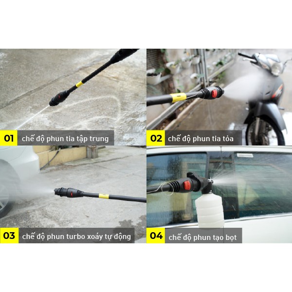 - Nhiều đầu vòi xịt tia, súng phù hợp với mọi vật dụng