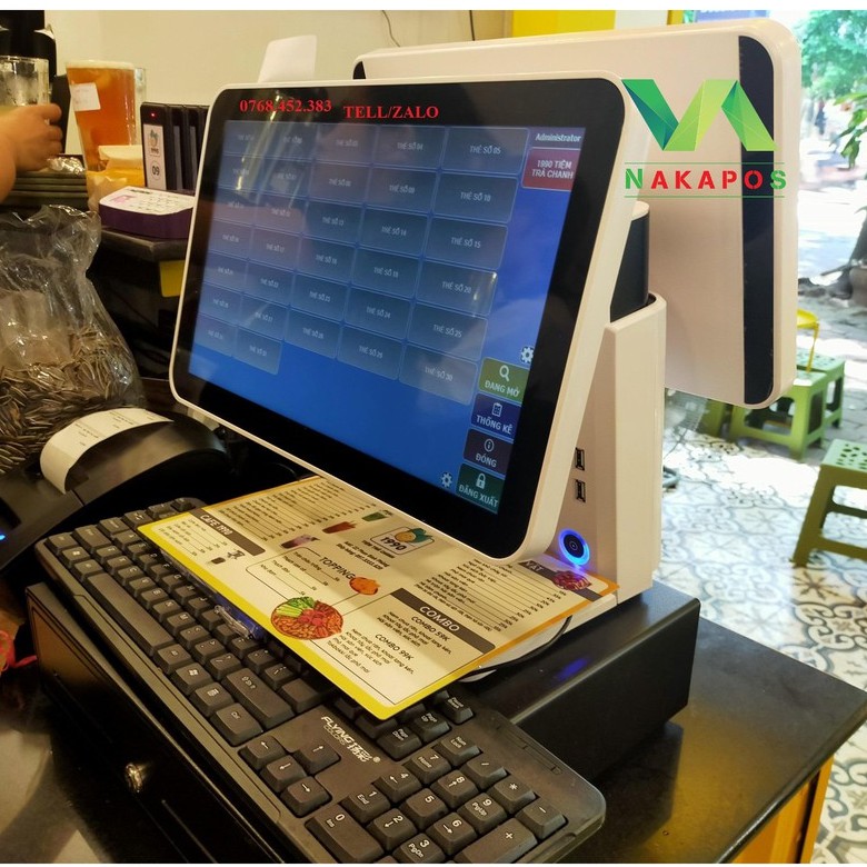 MÁY POS BÁN HÀNG NAKA 8990Màn hình chính 15 inch Led , Màn hình phụ 15 inch Led
