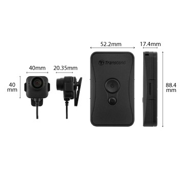 Máy quay gắn trên người DrivePro Body 52 của Transcend có bộ ghi hình được kết nối với máy chính bằng dây cáp linh hoạt, cho phép có nhiều tùy chọn đính kèm. Được làm theo yêu cầu thực thi pháp luật, an ninh cá nhân và các chuyên gia khác, DrivePro Body 52 bền là để chịu được nước và va đập. Máy quay này có cảm biến hình ảnh của Sony để chụp các hình ảnh có độ phân giải cao với tông màu cực tốt ngay cả trong ánh sáng thấp. Với Wi-Ftích hợp, DrivePro Body 52 cho phép người dùng phát trực tuyến và chụp ảnh nhanh trên thiết bị di động iOS và Android.Bộ chụp ảnh riêng biệt với cảm biến hình ảnh nhạy cảm cao