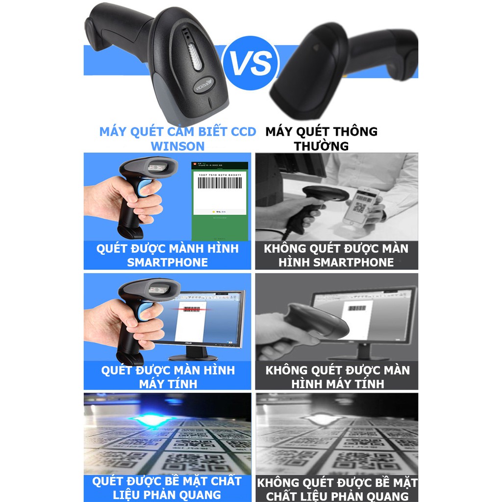 Máy quét mã vạch cảm biến CCD Winson ,quét được màn hình pc,laptop và smartphone