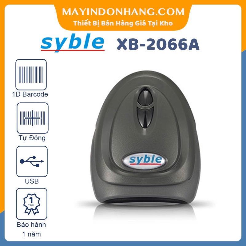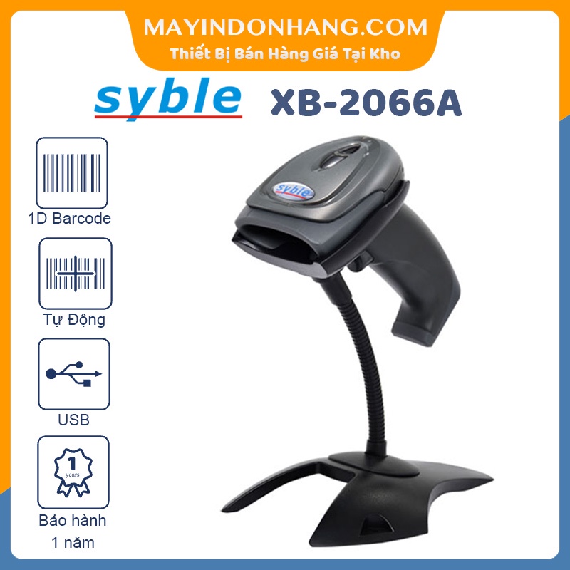 Máy quét mã vạch cầm tay 1D Syble XB-2066A - 1D Laser Có Chân Đế Quét Tự ĐộngSyble XB 2066A là dòng máy quét mã vạch chính hãng giá rẻ nhưng có chất lượng tốt nhất trong phân khúc đảm bảo đáp ứng tốt cho nhu cầu bán hàng, kiểm kho... với độ ổn định và độ bền cực cao.