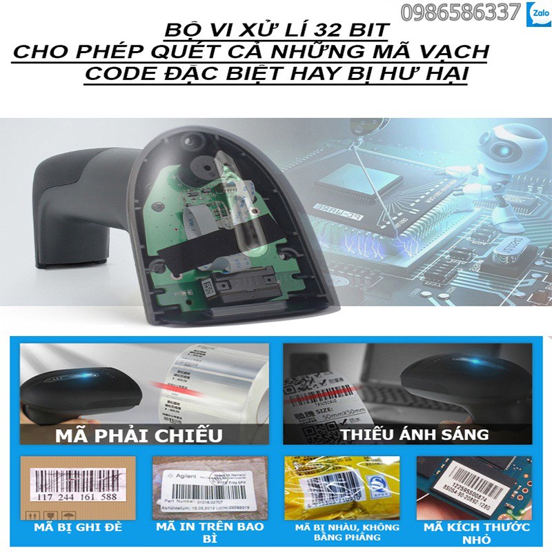 -Hỗ trợ quét: Barcode 1 chiều, có thể quét trực tiếp các mã trên màn hình