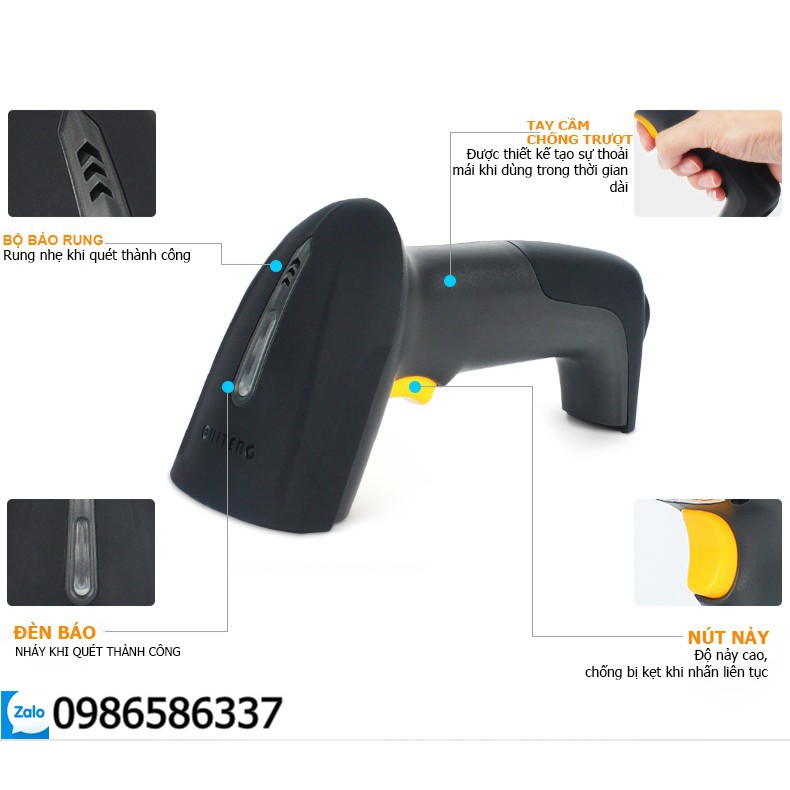 -Hỗ trợ quét: Barcode 1 chiều và QR code