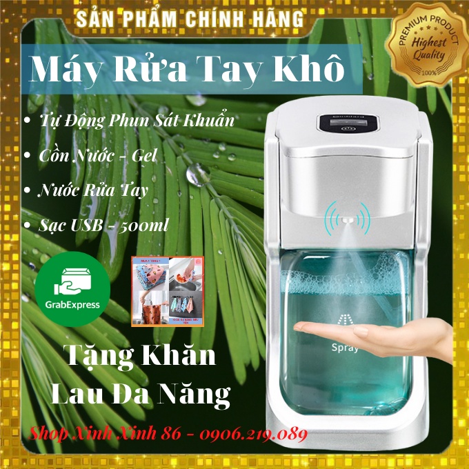 Máy Rửa Tay Sát Khuẩn Tự Động Phun Bọt Nhả Gel Xịt Cồn Rửa Tay Khô Sạc USB Dung Tích 500ml