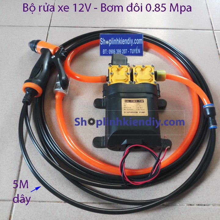 Bộ sản phẩm bao gồm : 1 Bơm đôi 12V - 0.85Mpa + Súng Rửa với dây 5M + ống hút dài 1M
