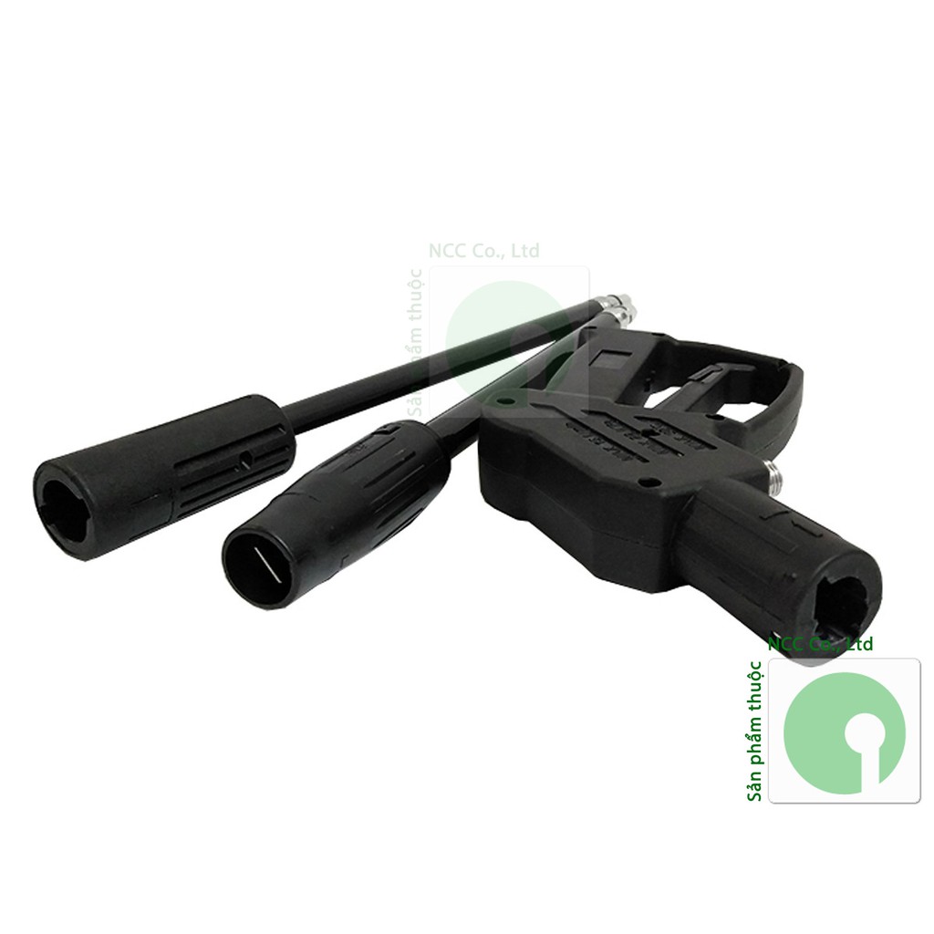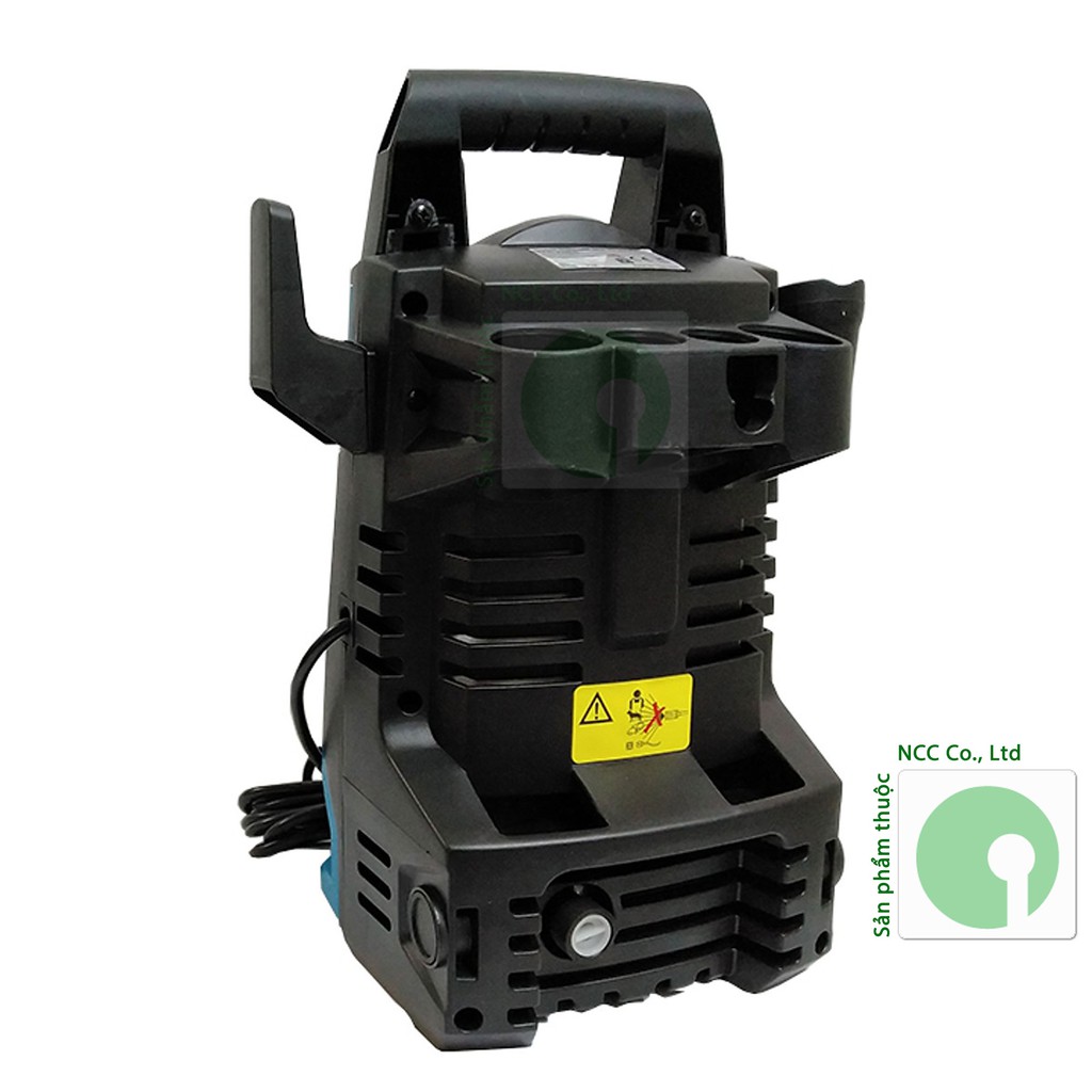* Vỏ máy phun xịt rửa được làm từ nhựa cao cấp, chống thấm nước tốt. Tay cầm chắc chắn, có giá treo phụ kiện bên hông giúp bạn cất giữ phu kiện máy rửa xe gọn gàng.