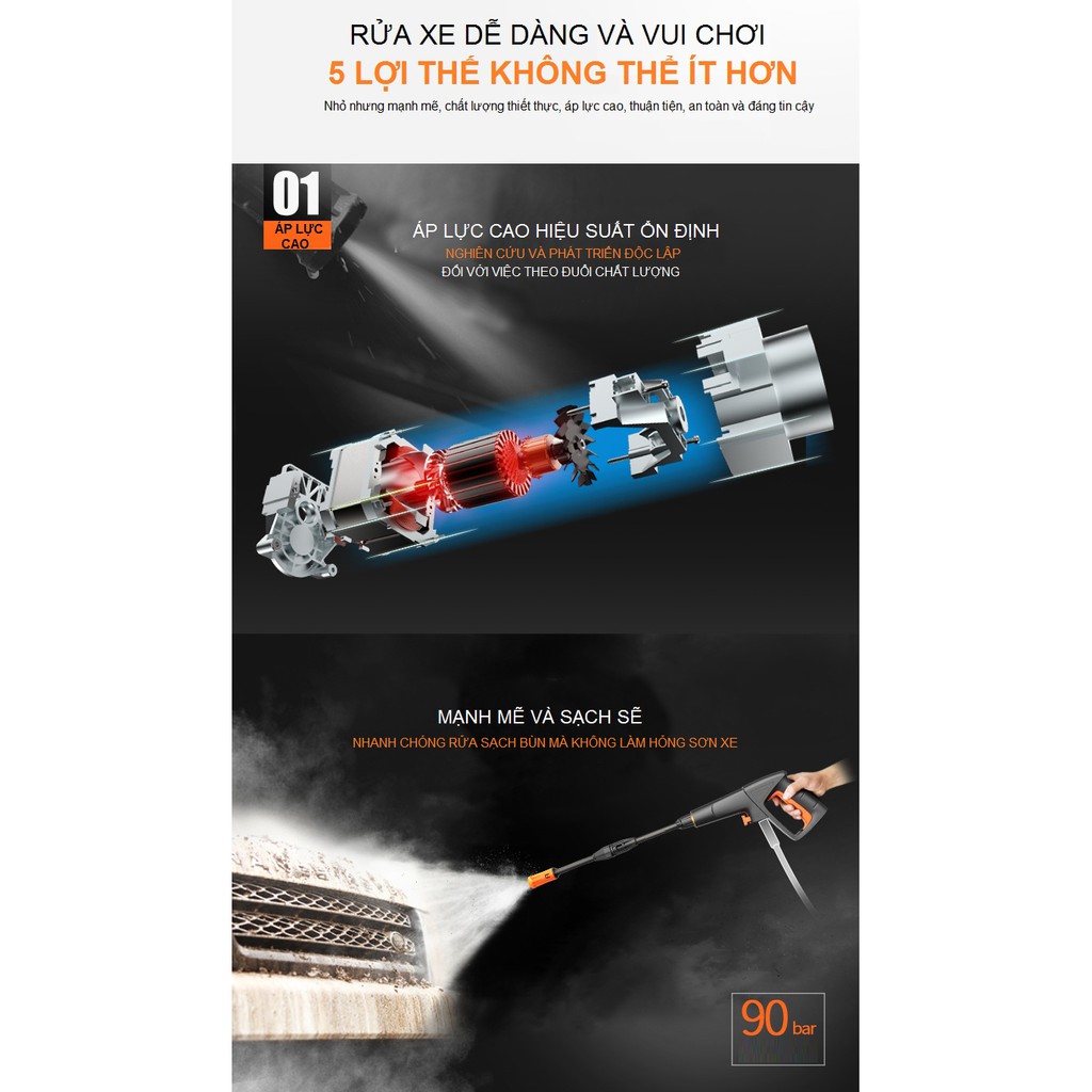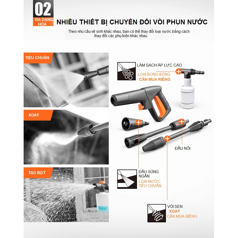 – Tính năng: Tiết kiệm nước, rửa xe, tưới cây, tường nhà, sân vườn, nhà vệ sinh,…