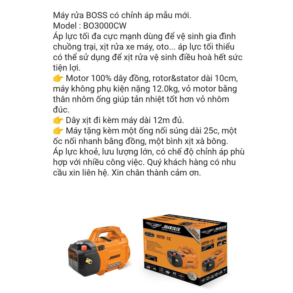 Máy rửa xe BOSS 3000W BO3000CW có chỉnh áp thế hệ mới tặng bình bọt tuyết