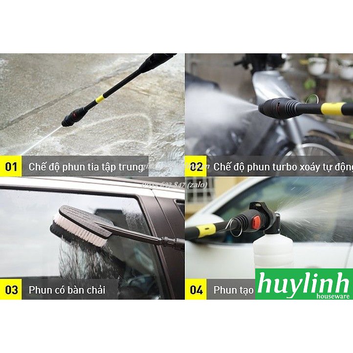 - Rửa xe máy, rửa ôtô làm sạch nhanh chóng, phun xịt gầm xe, nóc xe cách dễ dàng.