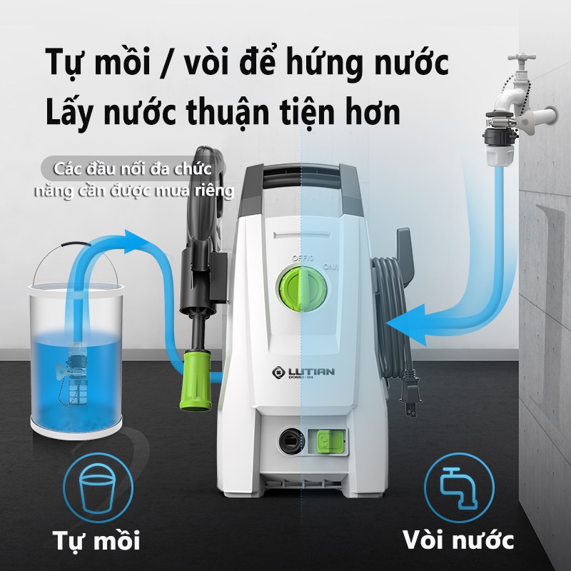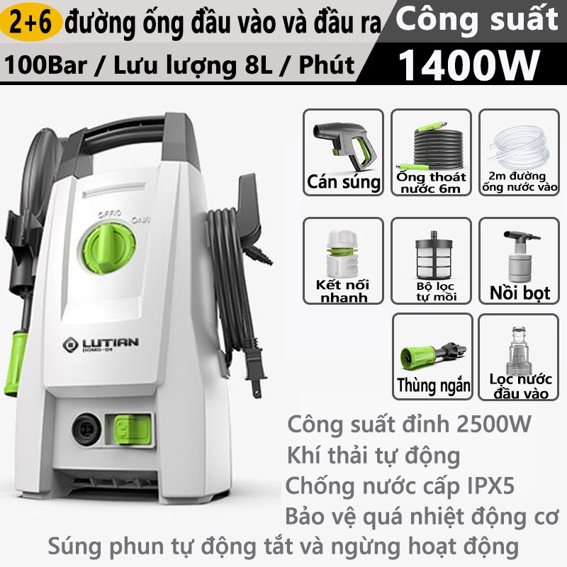 Máy rửa xe cao áp mini gia đình LUTIAN tặng kèm nhiều phụ kiện Ống cao áp 2 + 6 mét