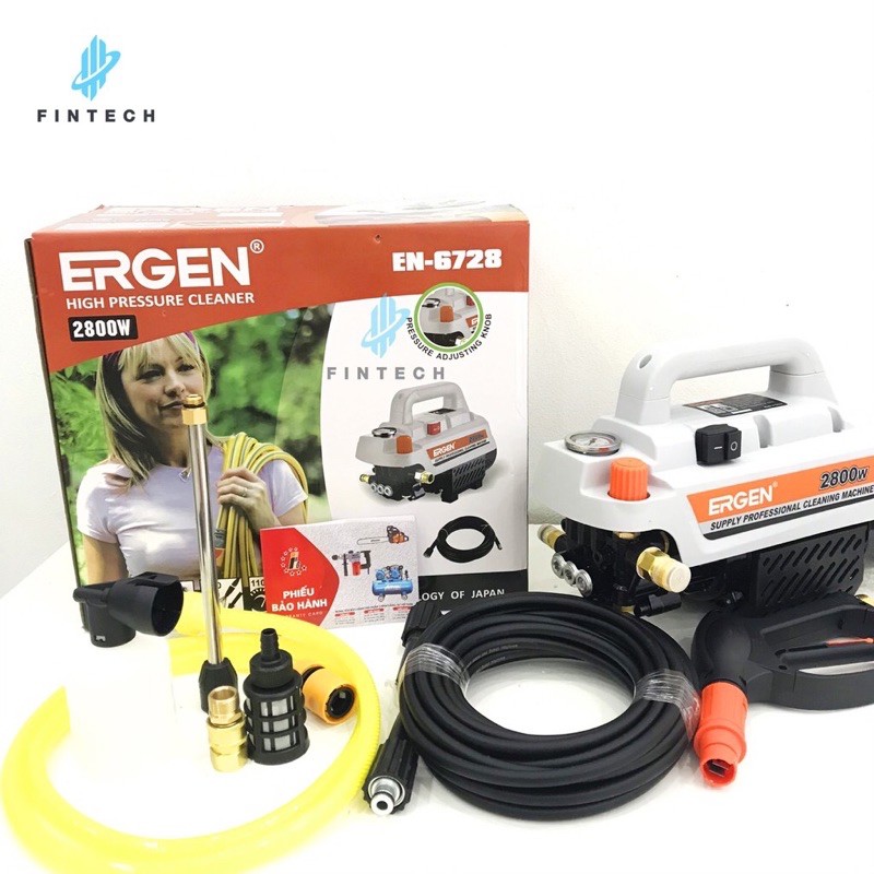 Máy rửa xe Ergen EN6728 ra mắt năm 2020 với thiết kế độc đáo có núm vặn chỉnh áp trên thân máy phù hợp cho nhiều mục đích, công suất lên tới 2800W, áp lực phun mạnh nhất 200 bar.