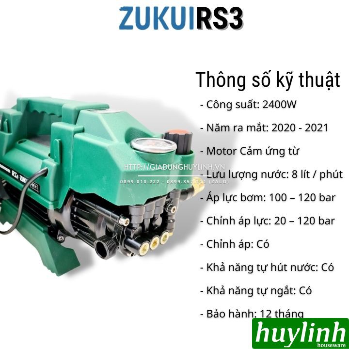 Thông số kỹ thuật Máy rửa xe Zukui RS3 – 2400W – Chỉnh áp