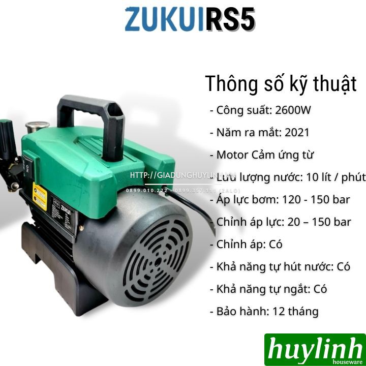 Thông số kỹ thuật Máy rửa xe Zukui RS5 – 2600W
