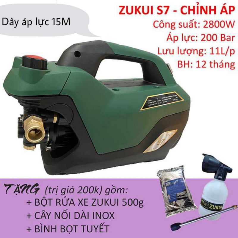 máy rửa xe có chỉnh áp zuikui s7 có thể rửa máy lạnh , rửa xe , rửa các vật dụng trong nhà dễ dànThông số kỹ thuật Máy rửa xe Zukui S7 – 2800W. có điều chỉnh áp lực.