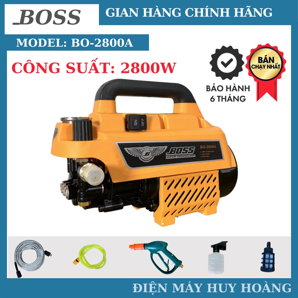 Máy rửa xe chính hãng BOSS 2800w thế hệ mớiHàng chính hãng công ty sử dụng lõi đồng 100%. Cảm ứng từ thế hệ mới độ bền rất tốt xo với các đời máy cũ