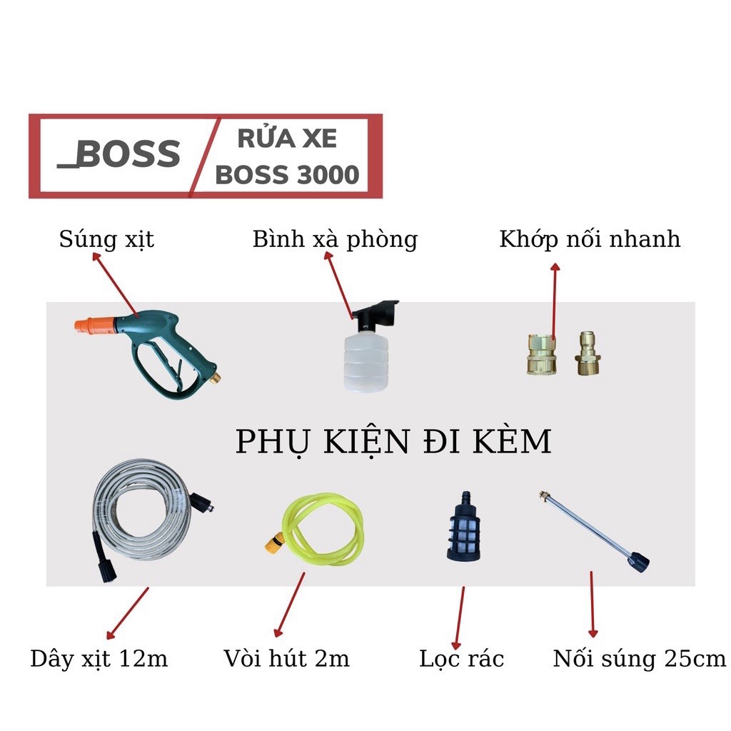 Nhà cửa & Đời sống > Dụng cụ & Thiết bị tiện ích > Dụng cụ > Máy rửa áp lực nước || Máy rửa xe có chỉnh áp thương hiệu BOSS công suất 3000W chuyên dùng xịt rửa xe, vệ sinh nhà cửaCòn hàng