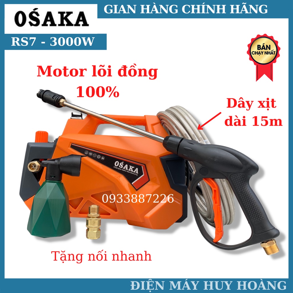 Máy rửa xe dây đồng 100% Osaka 3000w RS7 dây xịt dài 15m