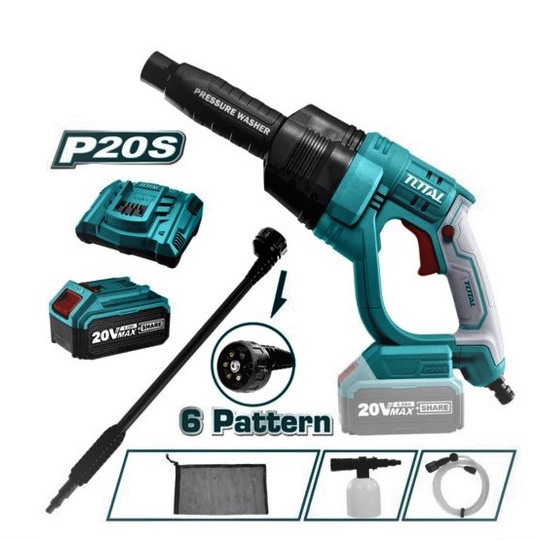 Thông số kỹ thuật Bộ máy rửa xe dùng pin sạc cầm tay mini 20V TOTAL TPWLI20084 rửa máy lạnh, vệ sinh xe máy, xe hơi, phun thuốc, tưới cây.