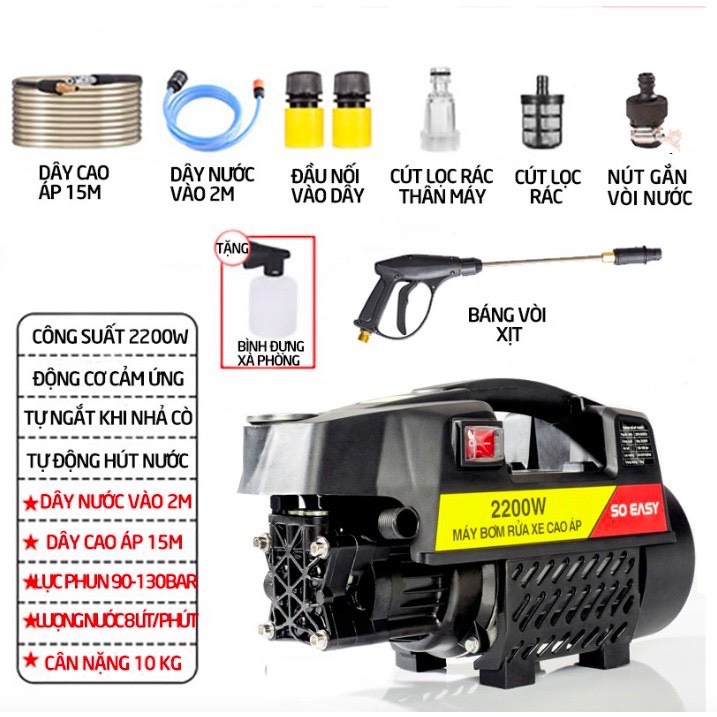 Máy rửa xe gia đình, may rua xe công suất mạnh 2200W, may rua xe mi ni, máy rửa xe áp lực cao, máy xịt rữa xe dễ dàng sử dụng, ống bơm nước 15m, vòi bơm áp lực cao C0002B3• Công suất: 2200W.