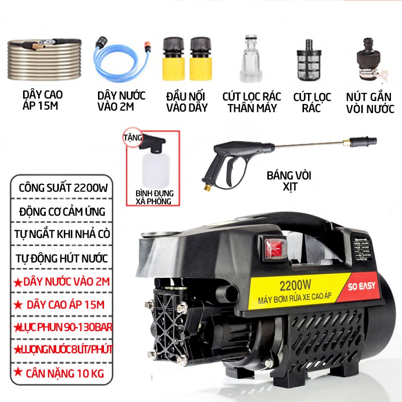 Giới thiệu sản phẩm: Máy rửa xe gia đình, may rua xe công suất mạnh 2200W, may rua xe mi ni, máy rửa xe áp lực cao, máy xịt rữa xe dễ dàng sử dụng, ống bơm nước 15m, vòi bơm áp lực cao C0002B3
