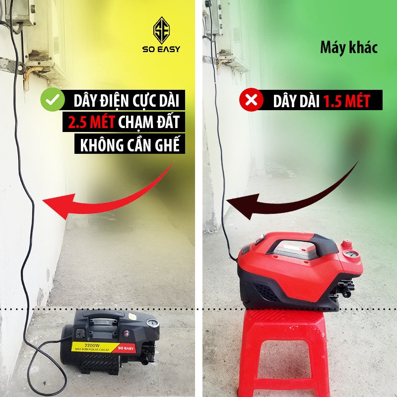 Máy rửa xe gia đình,công suất 2200W có nút tự ngắt khi quá tải máy xịt,lau rữa xe dễ dàng,dây cáp thoát nước 15M C0002B3