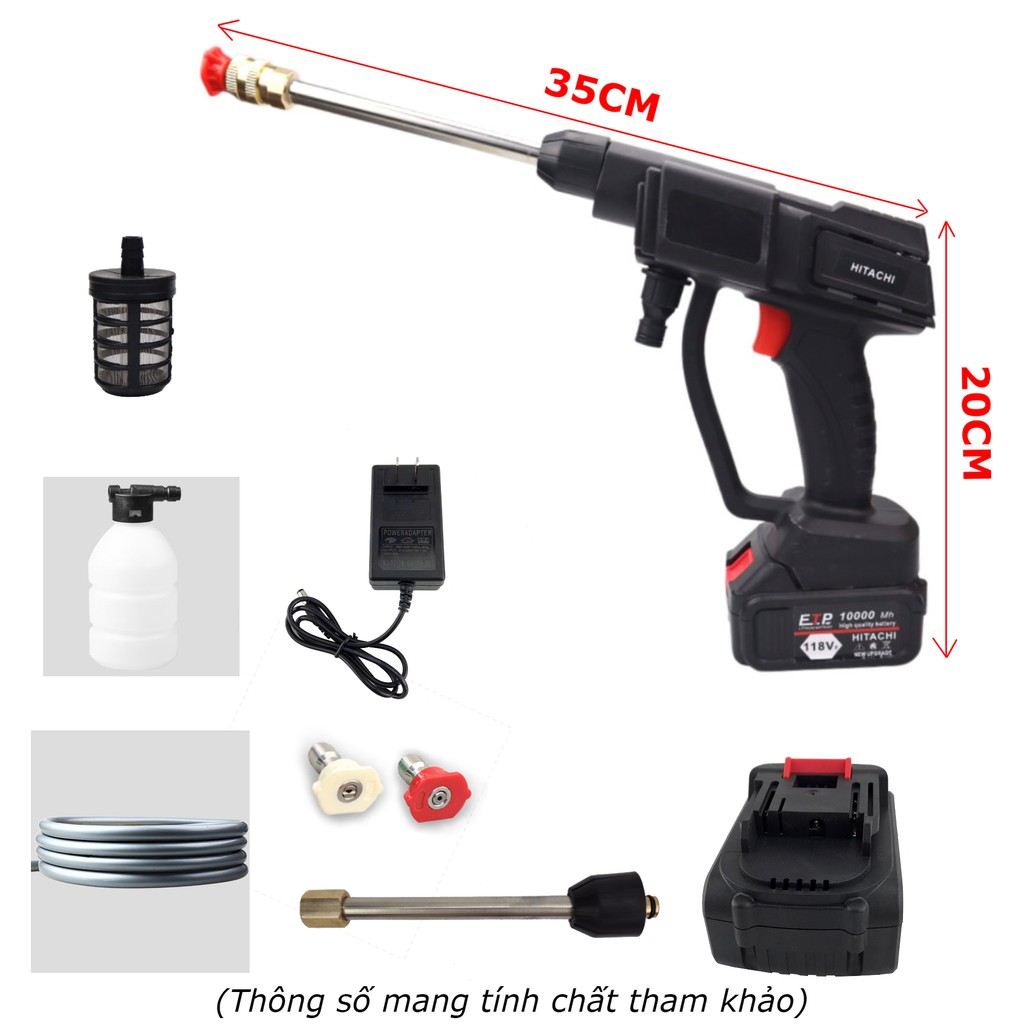 Bộ sản phẩm Máy rửa xe dùng pin HITACHI bao gồm: