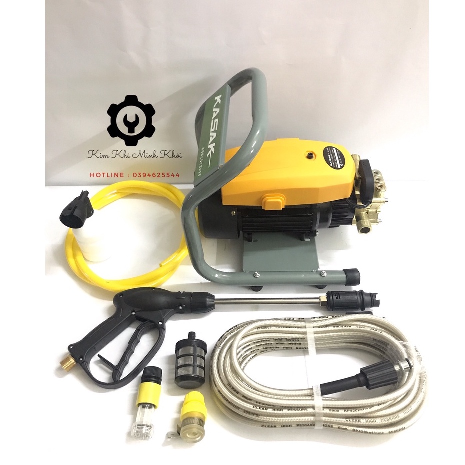 Máy rửa xe Kasaki 2000w DÂY 15m MÔ TƠ TỪ LÕI ĐỒNG 100%, Máy rửa xe gia đình mini| Máy rửa xe cao áp