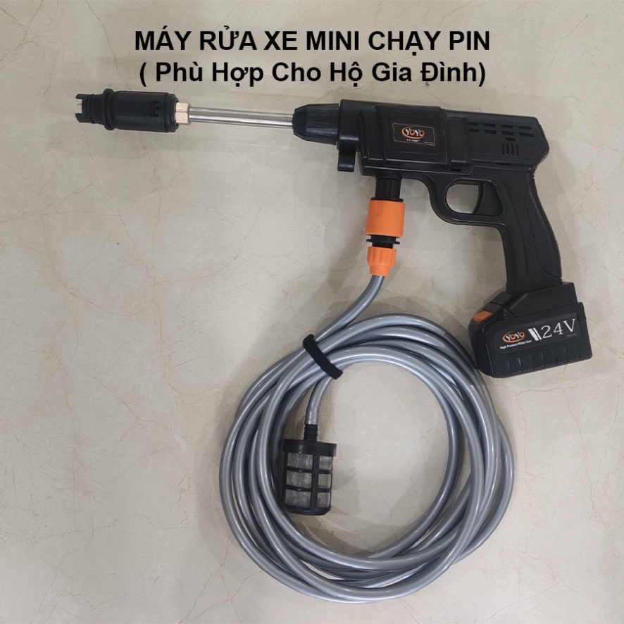 Máy Rửa Xe - Máy Rửa Xe Mini - Chạy Pin 24V- 200W, Áp Lực Cao, Tặng bình Tạo Bọt CT167A