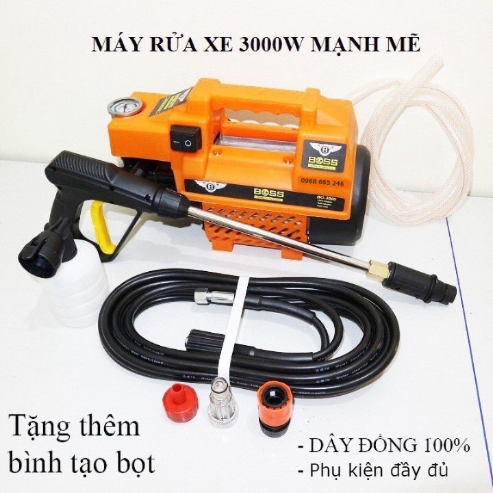 Máy rửa xe mini áp lực cao áp cho gia đình BOSS 3500W máy xịt rửa điều hòa dây 15m bản 2021