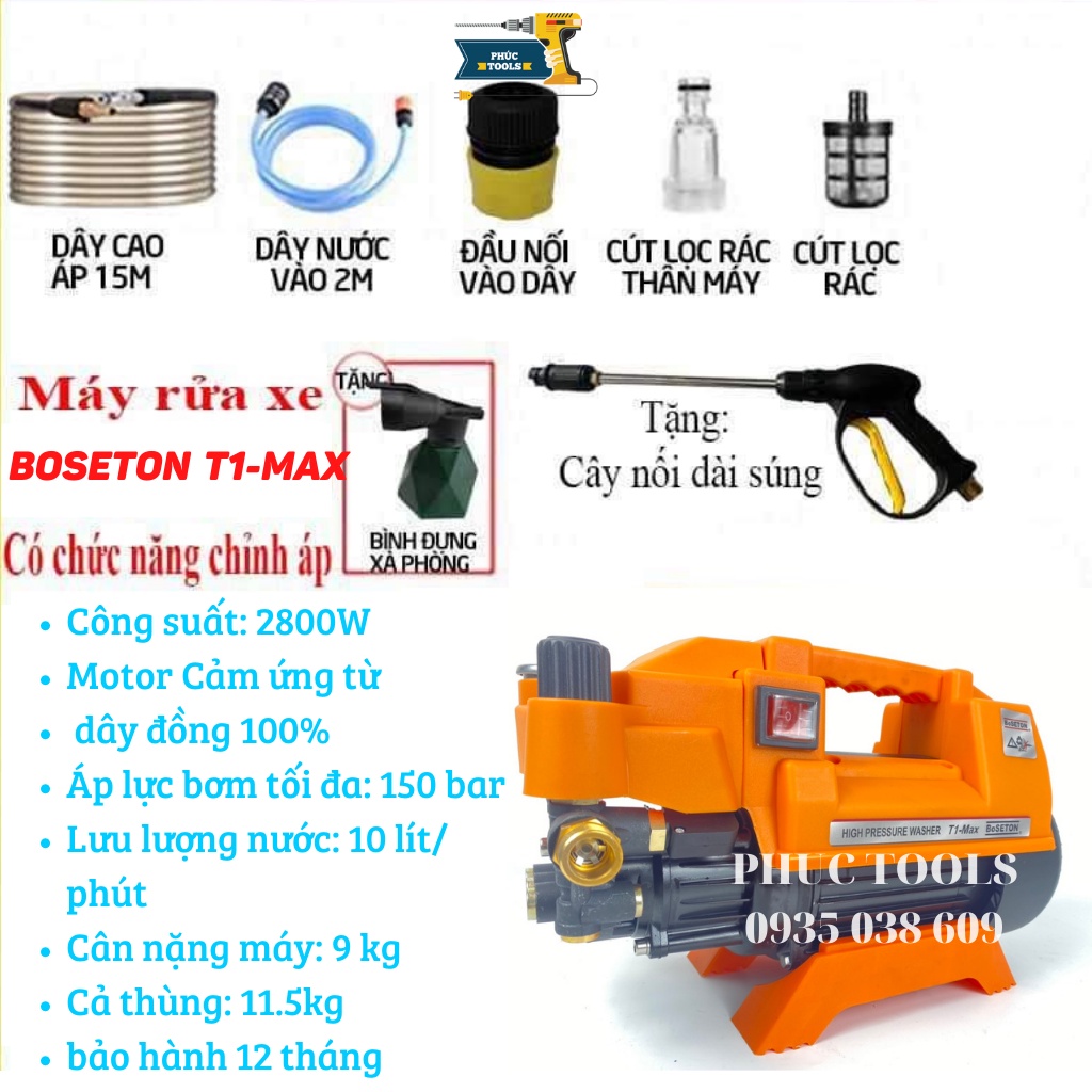 Máy rửa xe mini Boseton 2800w, có chỉnh áp, lõi đồng