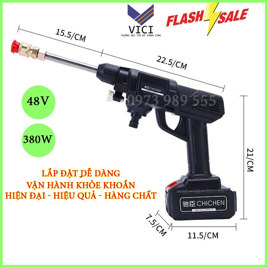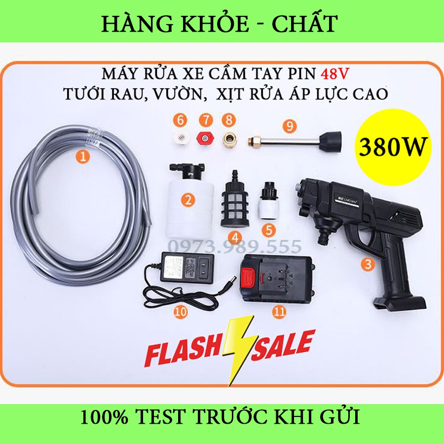 Máy Rửa Xe Mini Dùng Pin Hàng Nội Địa Cao Cấp- Chạy Pin 48V- 380W, Áp Lực Cao, Tặng Kèm Bình Tạo Bọt [ TẶNG HỘP NHỰA ĐỰNG ]✅ Thông số kỹ thuật máy rửa xe mini:
